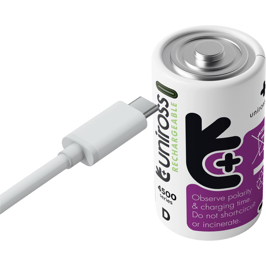 2 Акумулаторни батерии D Li-Ion Uniross 1.5V 5000 mAh + USB Type C